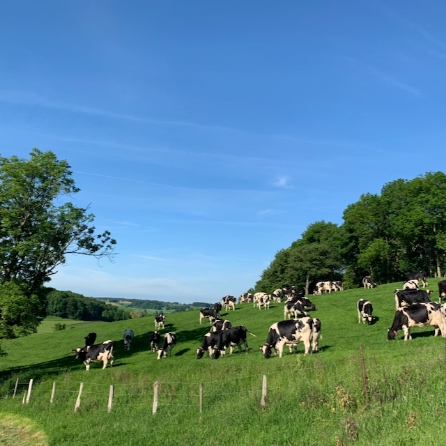 Onze koeien eten voornamelijk vers gras van eigen weiden, aangevuld met wat ze nog nodig hebben voor een gezond en evenwichtig rantsoen. Blije koeien die buiten lopen, ruimte krijgen en goed gevoederd worden, dat proef je terug in elke bol ijs, elke lepel yoghurt en elk stukje boter.